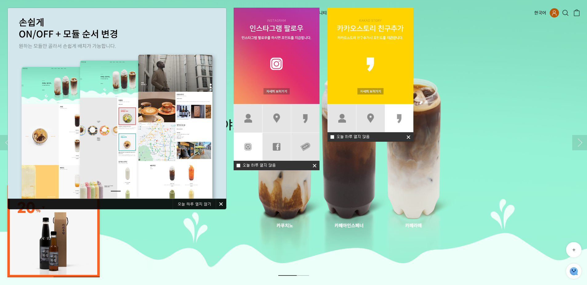 카페24 쇼핑몰 관리자 > 디자인 (PC/모바일) > 배너/팝업